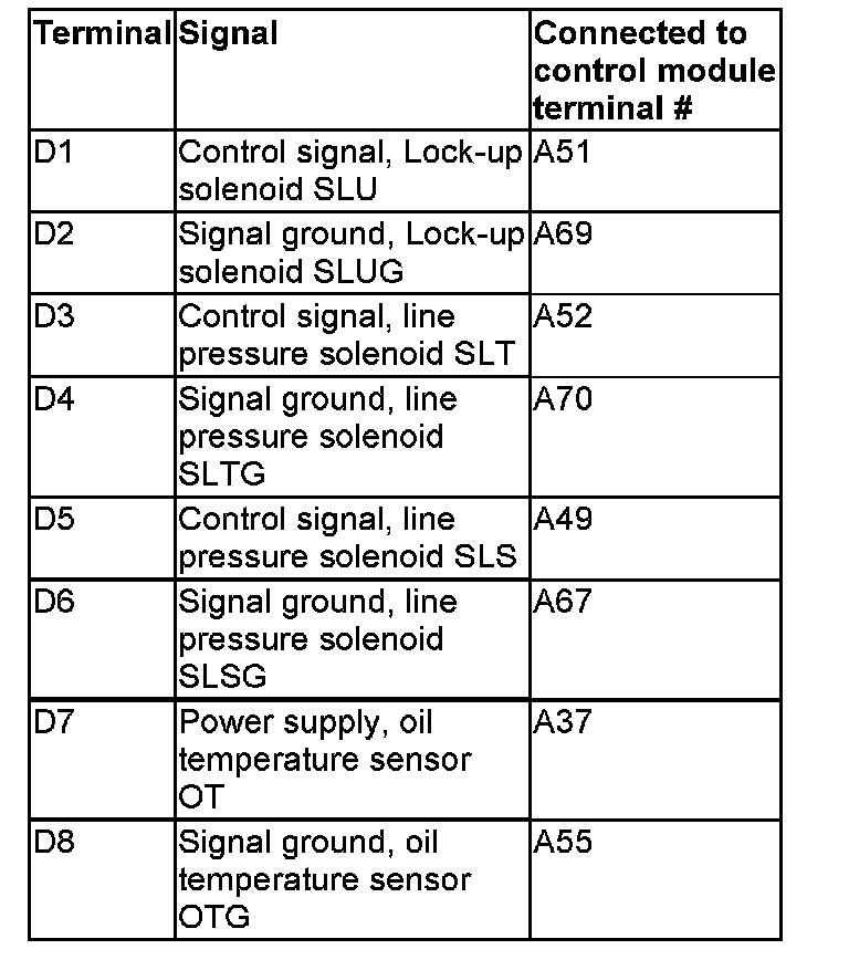 Connector D, transmission