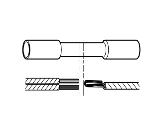 If the butt connector has been correctly crimped both crimping points should be uniformly compressed.