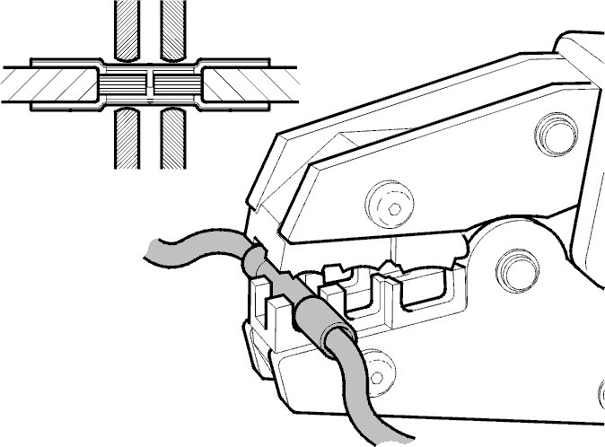 - Check that the butt connector is correctly located in the crimp tool forming section.