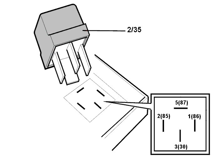 - Temporarily connect two cables to relay base terminals #3 (30) and #5 (87)