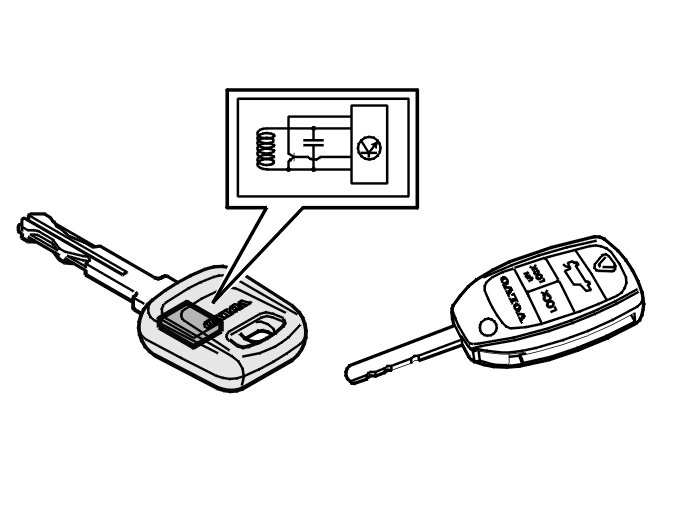 Ignition keys can be added or erased. A maximum of 6 key IDs can be programmed into the immobilizer control module. When programming a key, the control module identifies the relevant key and stores it in the control module memory.