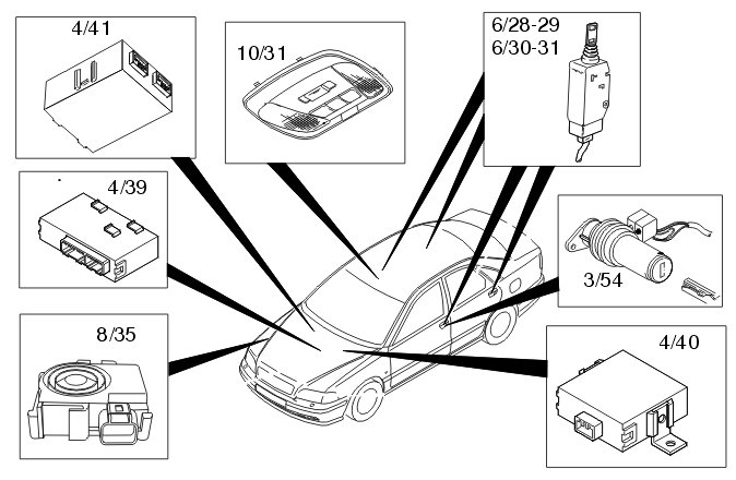 The main role of the VGLA (Volvo Guard and Locking Alarm system) is to control and monitor the locking and alarm system in the car. The control module is located in the center under the dashboard in front of the gear selector lever.