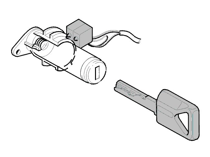 The value must be infinite when the lock is unaffected and 0ohms when the key is turned to the locking position.