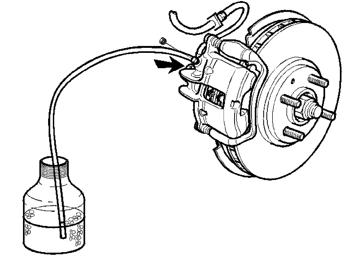 Remove the protective cap from the bleed nipple and connect the transparent hose to the collecting bottle. Open nipple about one turn.