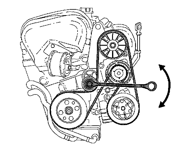 - Turn the crankshaft two turns. Check that the markings on the crankshaft and camshaft pulley correspond.