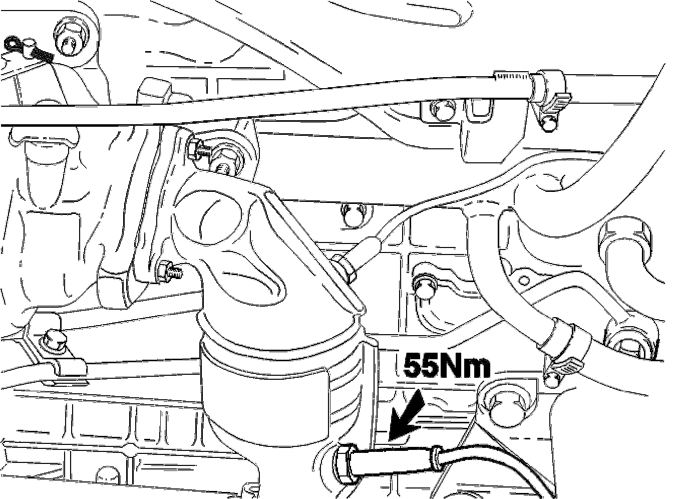 Tighten heated oxygen sensor (HO2S) to 55 Nm