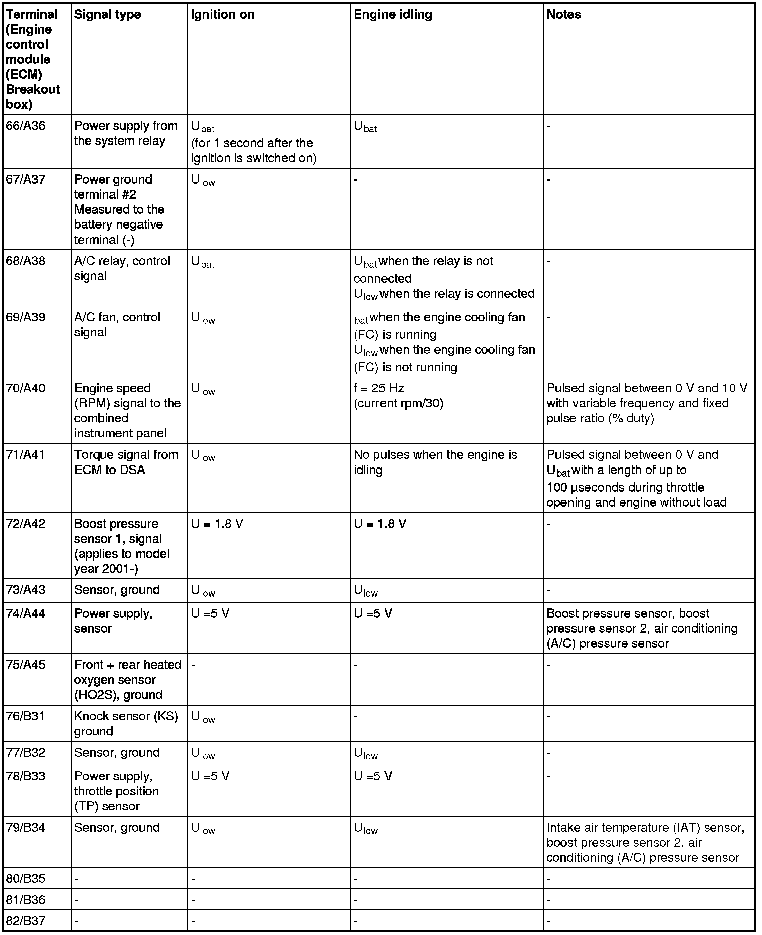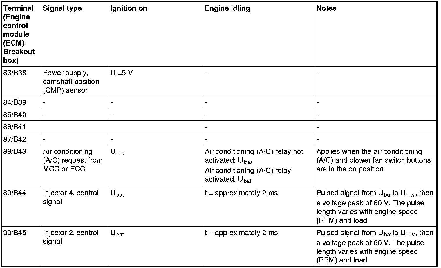 The values specified in the table apply with the engine unloaded and at normal operating temperature.