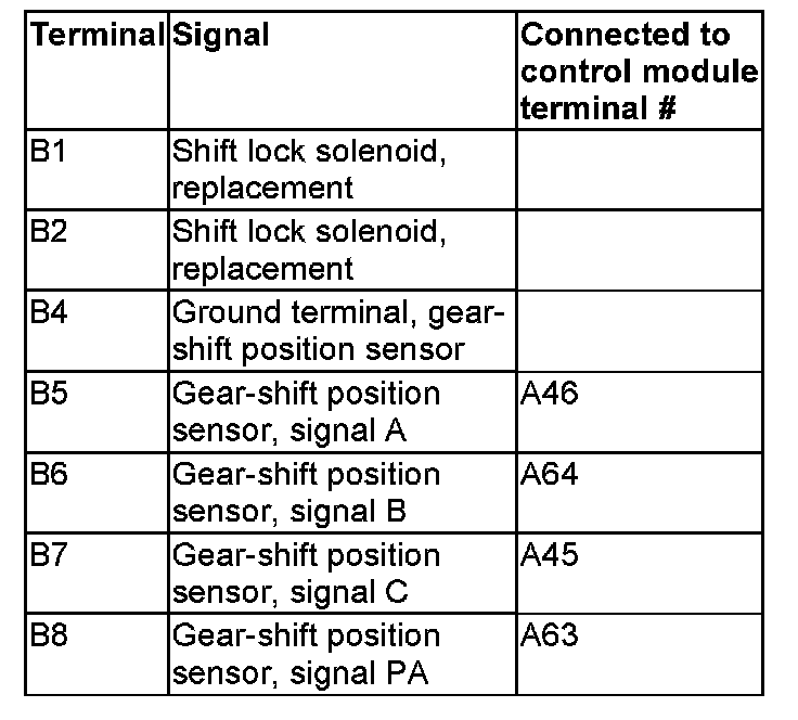 Connector B, transmission