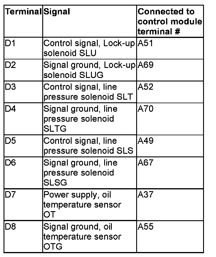 Connector D, transmission