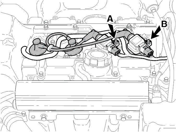 Note! The gray connector is for the left coil (cylinders 2 and 3), the blue connector is for the right coil (cylinders 1 and 4).