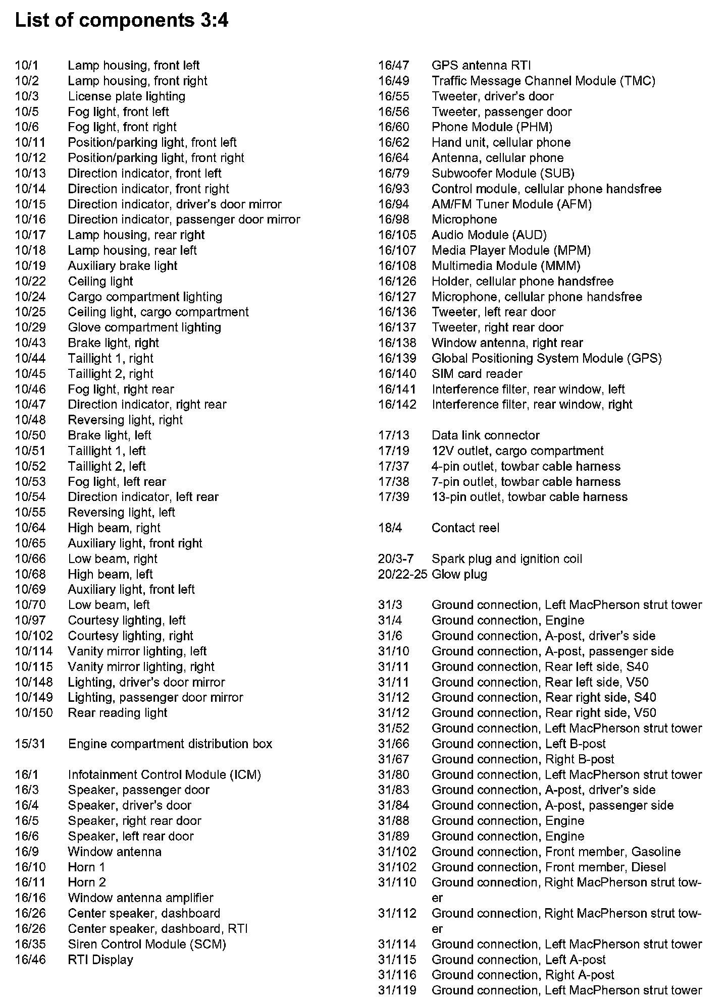 List of Components by Component Number