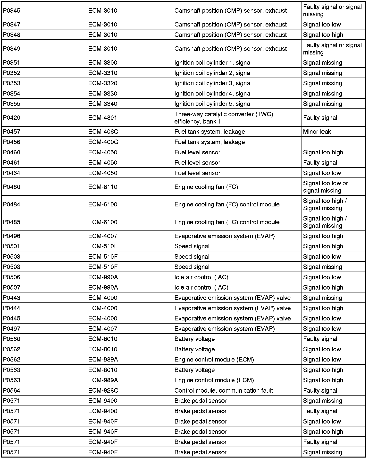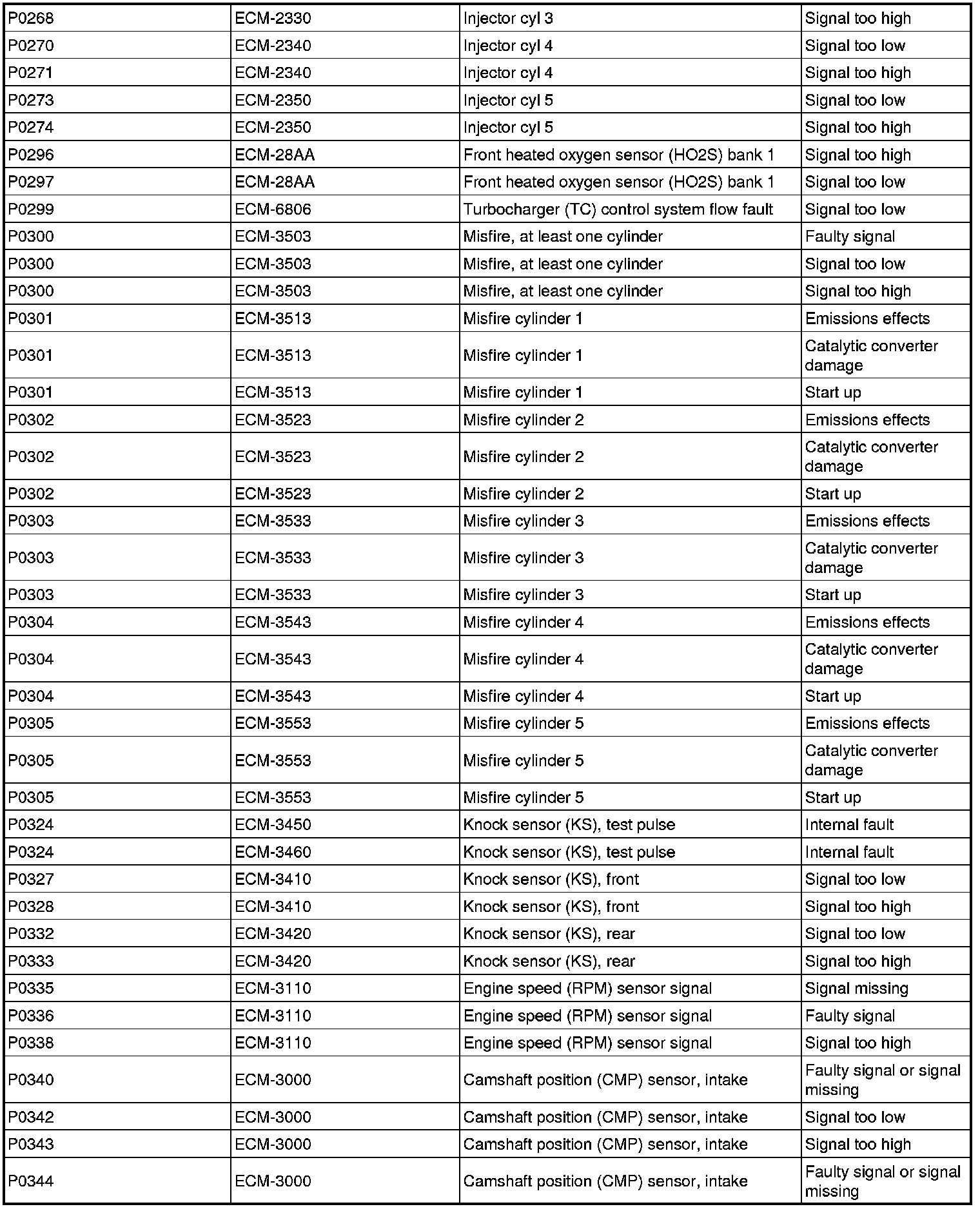 The table below is a conversion table between standardized diagnostic trouble codes (DTCs) (SAE/ISO) and the equivalent Volvo diagnostic trouble codes (DTCs) (DII).