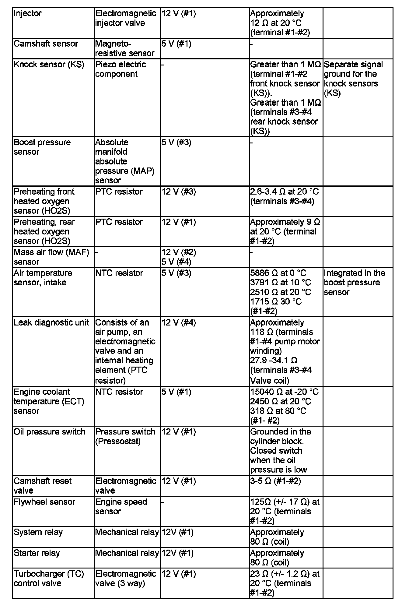 The component specification gives the value of the component when the connector is disconnected. Where no value is given, it is not possible to measure a relevant value at the component.