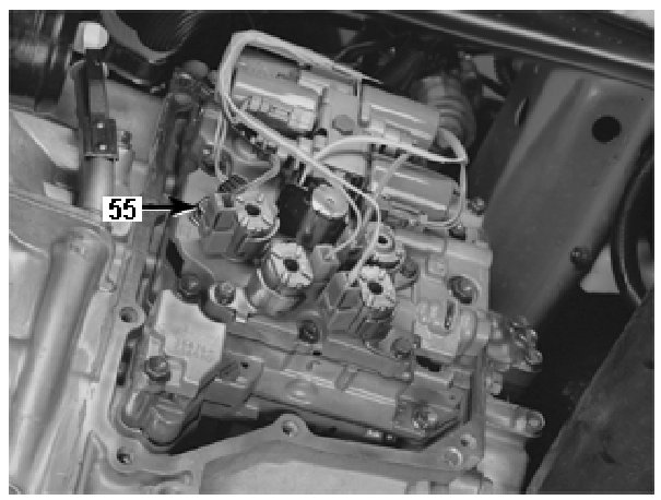 Install the cable harness for the transmission. Ensure that the guide for the connector comes between the lugs on the transmission. Ensure that the cable harness is secured to the holders on the control system.