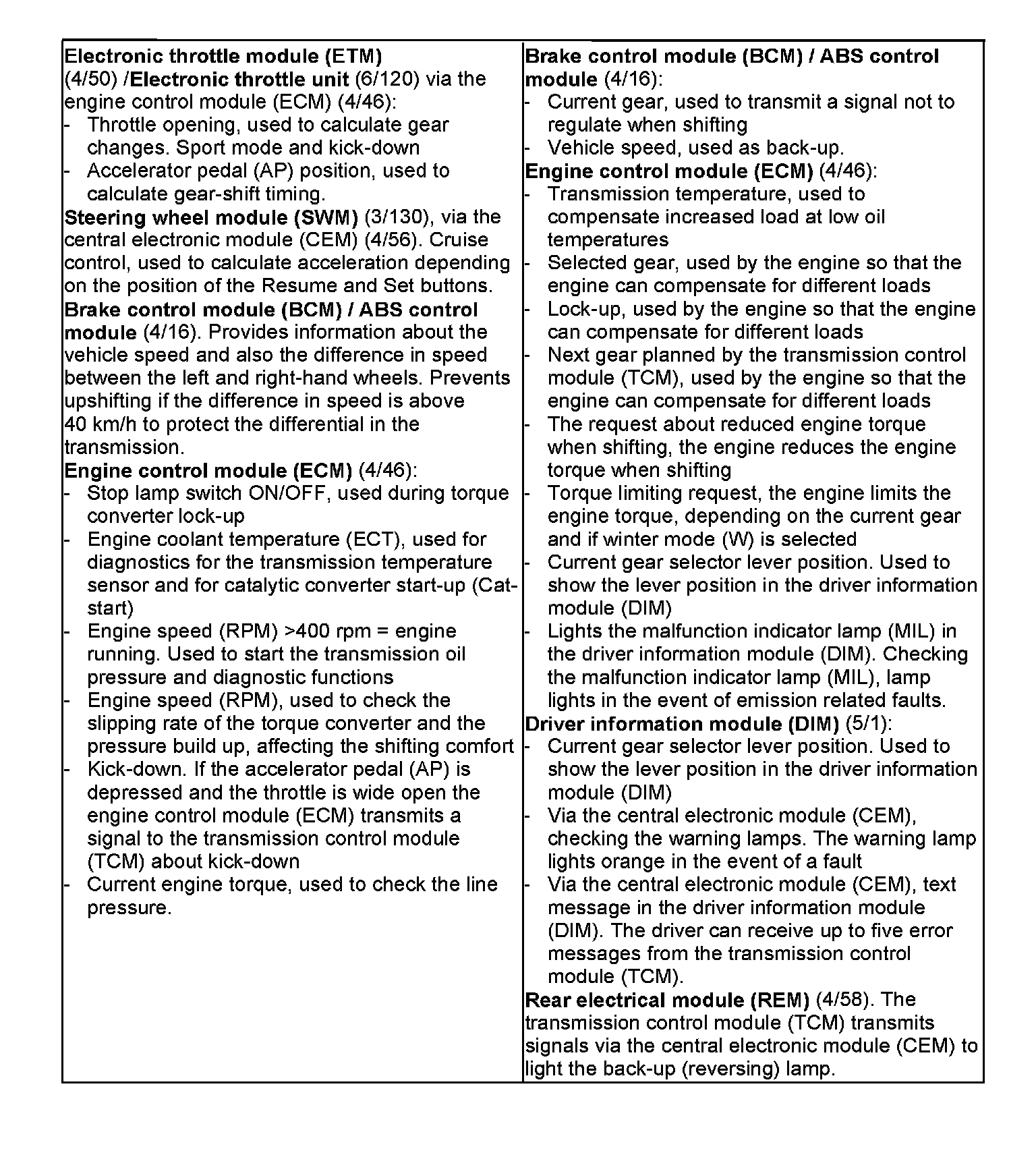 - Gear selector module (GSM) - Provides the transmission control module (TCM) with information about the Geartronic mode and winter mode (W) amongst others.