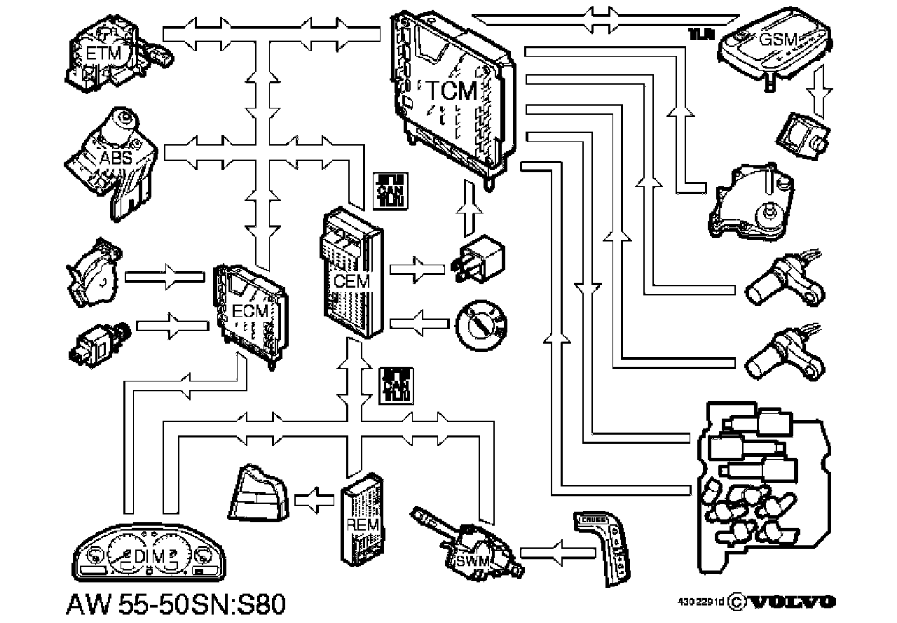 AW55-50 (and AW50AWD) is a 5-speed electronically controlled automatic transmission with a lock-up function for the three highest gears. The transmission control module (TCM) adapts the gear changes to ensure that the correct gear is selected for the driving mode, engine load, driver requirements, speed etc. This gives good fuel economy combined with increased comfort by ensuring smoother gear changes and lower noise levels.
