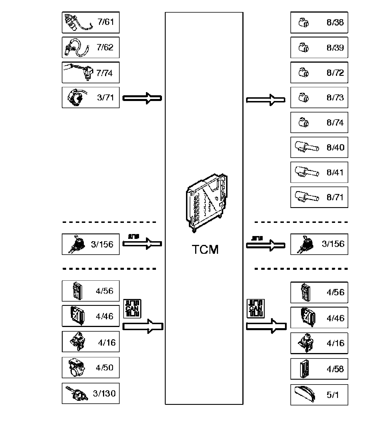 - Transmission control module (TCM) - Controls activation and deactivation of the solenoids by processing the signals from components such as the transmission input and output speed sensors and the temperature sensor. Also stores adaptive data as well as diagnostic trouble codes (DTCs) and frozen values for diagnostics