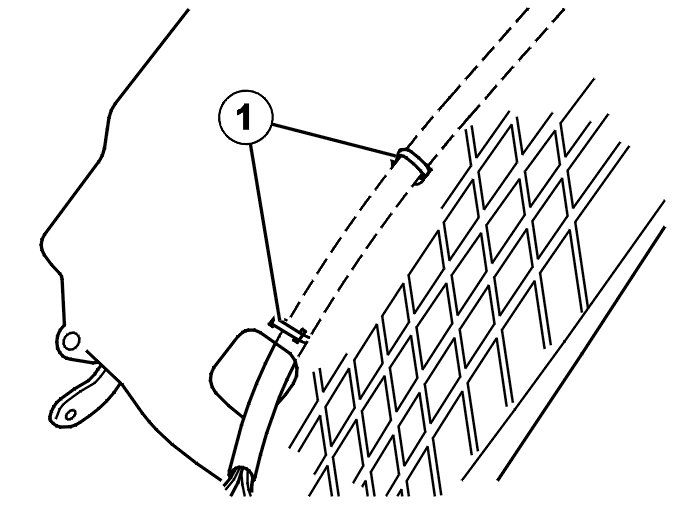 Release the lover cover for the hinge. Cut off the tie strap for the cable harness. Slide out the cable harness (1).