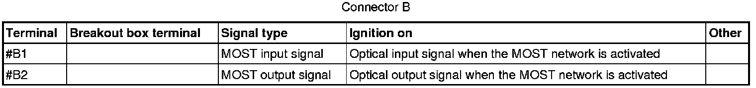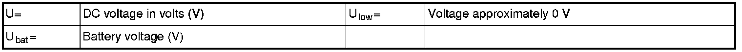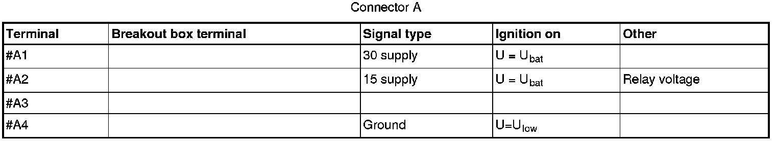 Signal specificationGeneralAll the values given below are between the respective terminal in column 1 and terminal #A2 in column 2 (power ground) unless otherwise stated in brackets after the table entry.