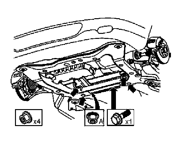 Remove the sub-frame screws together with the accompanying brackets and washers.