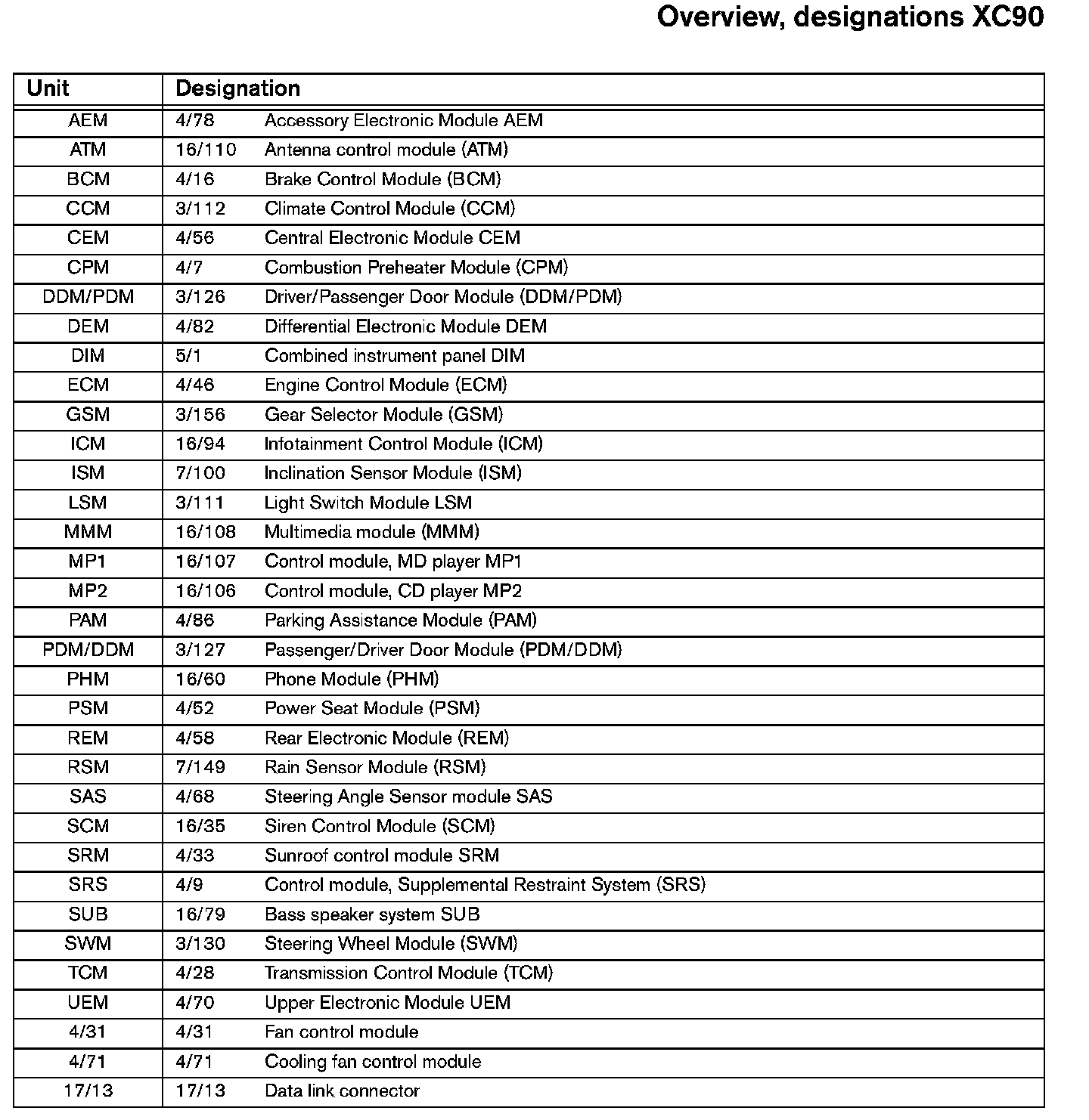Overview, Designations: