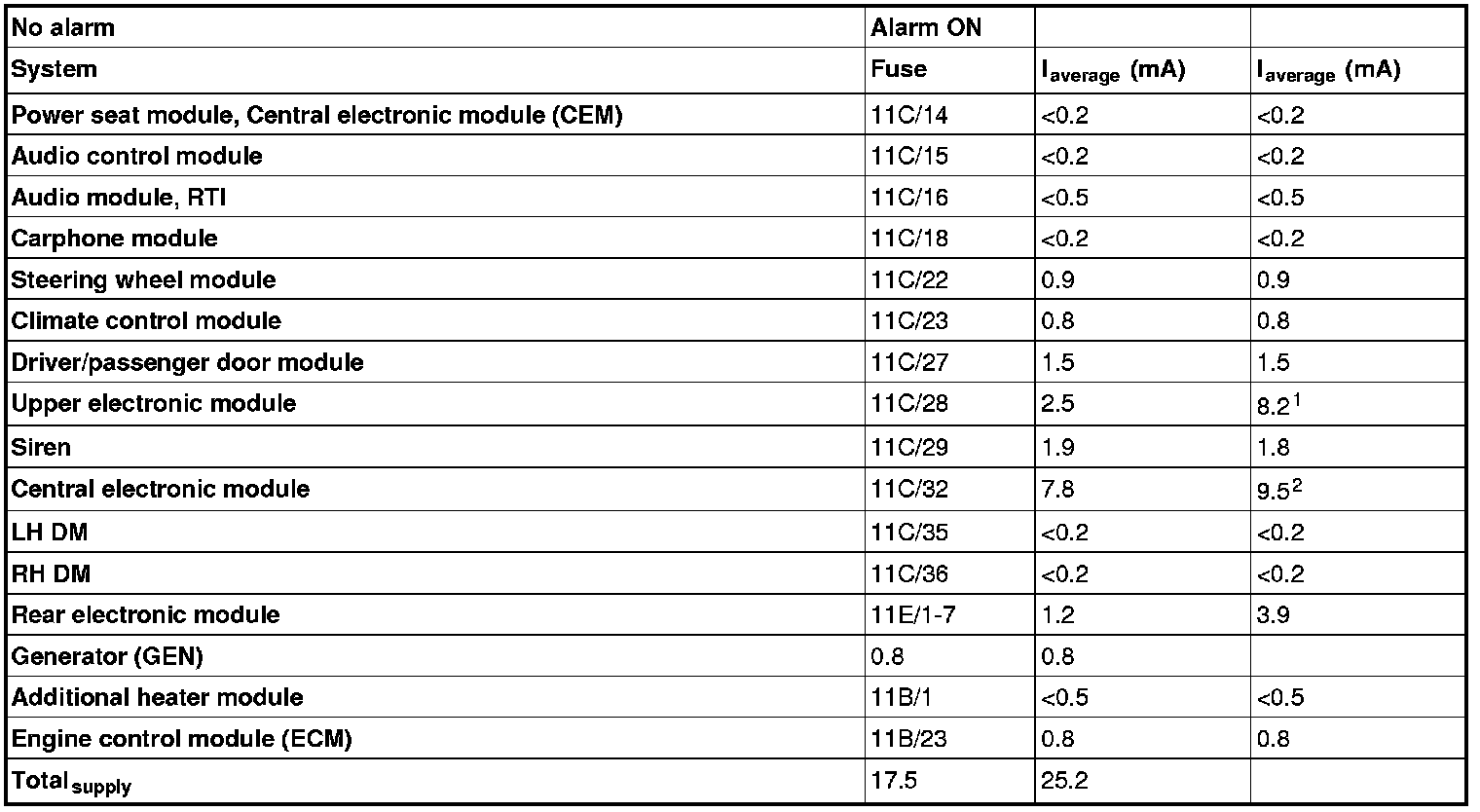 2 The value may vary. The current for the siren also passes through fuse 11C/32.