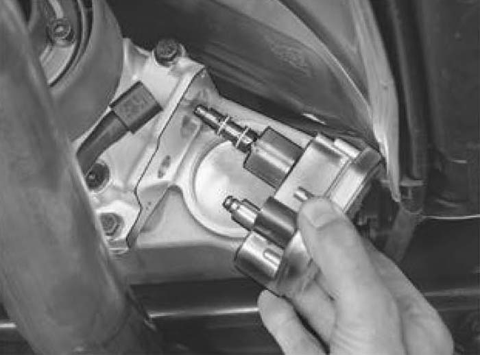 Wait 3-4 minutes after the ignition has been switched off to reduce oil leaks on removal.