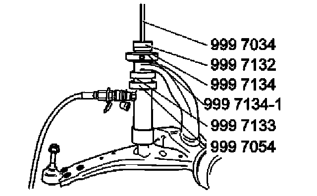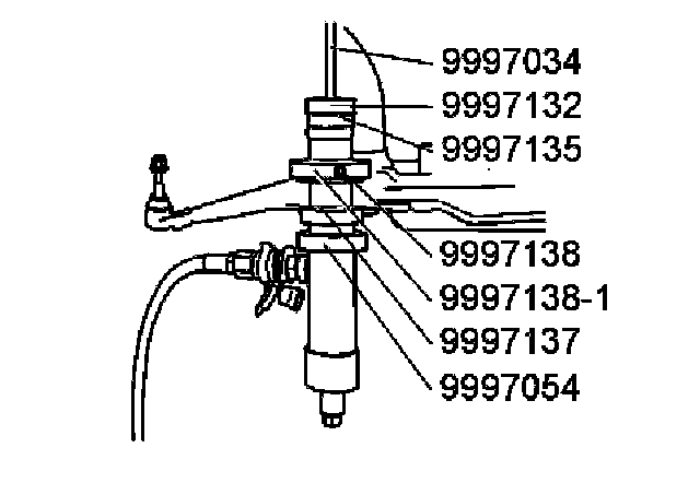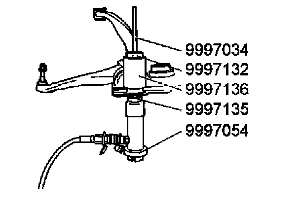 Install the control arm. Use: 999 7054 with: 999 7034, nut: 999 7132, socket: 999 7138, drift: 999 7135 Lock ring: 71381 and ring: 999 7137.