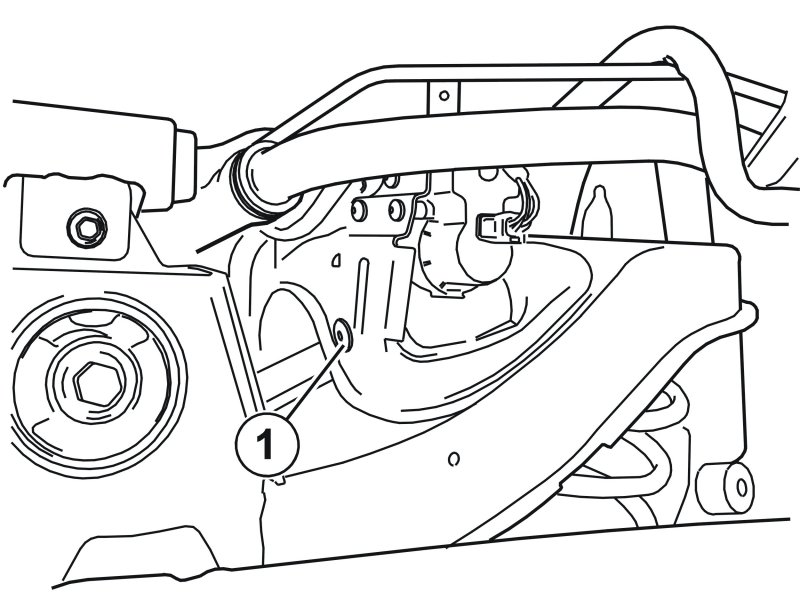 - the M5 screw (1) securing the pump bracket on the sub-frame.