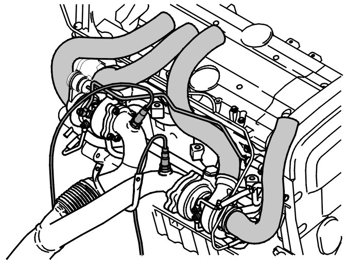 - the hose on the charge air pipe at the top of the engine.
