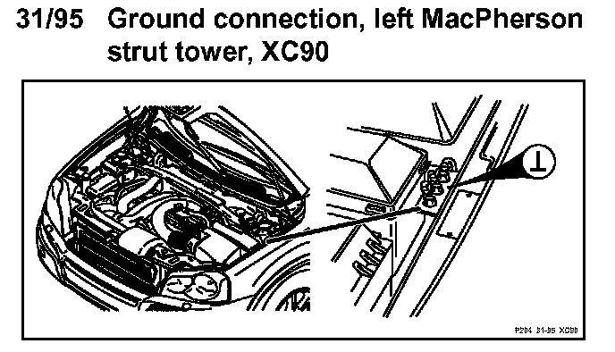 31/95 Ground Connection, Left MacPherson Strut Tower: