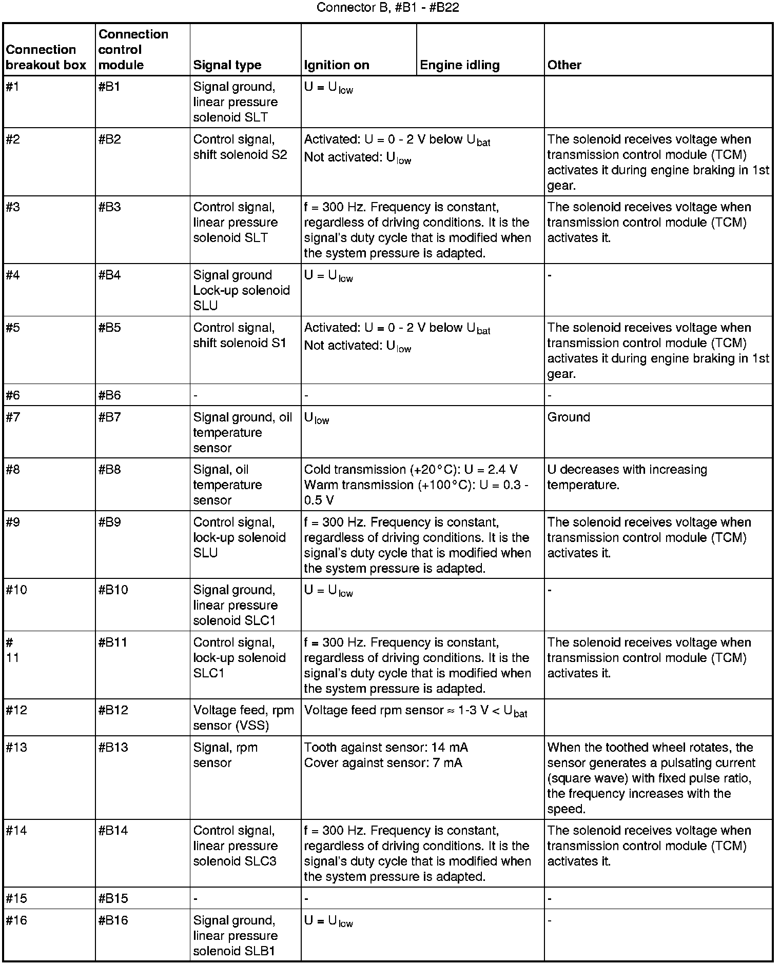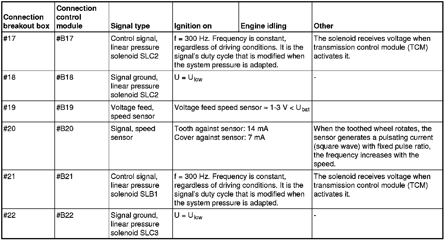 Connector B (22-pin to transmission) corresponds to #1 - #22 on the breakout box.