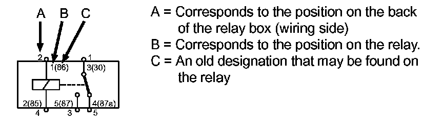 The diagram indicates two or three different designations for the relay's position. This is described above.