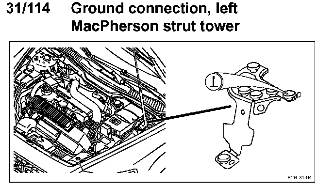 31/114 Ground Connection, Left MacPherson Strut Tower: