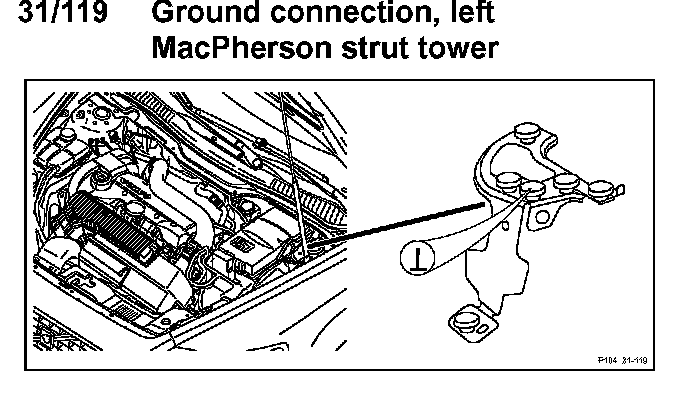 31/119 Ground Connection, Left MacPherson Strut Tower: