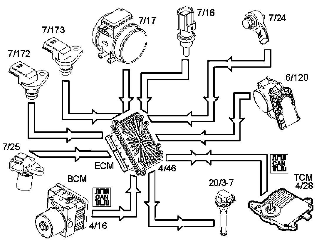 - engine speed (RPM) sensor (7/25) camshaft position (CMP) sensor (7/172-7/173)