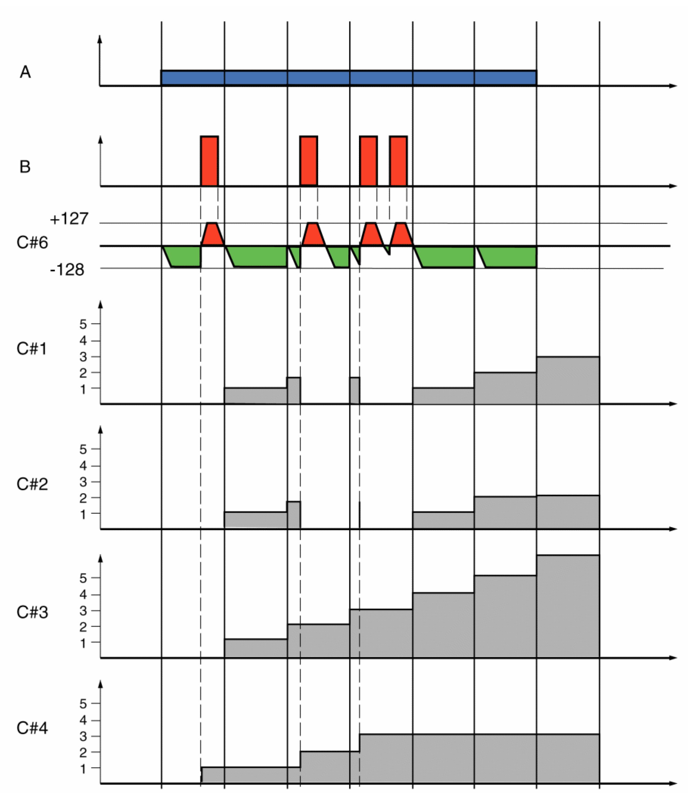 Counter 6 malfunction detection (C#6). The counter counts the number of internal detections of the malfunction that have been run for the diagnostic trouble code. When this counter reaches value +127, the control modules decides that the malfunction is active right now.