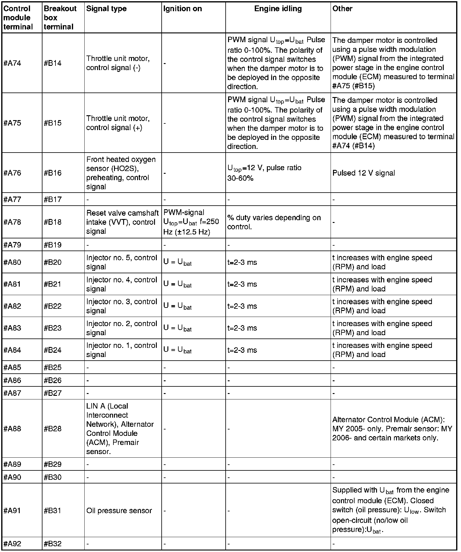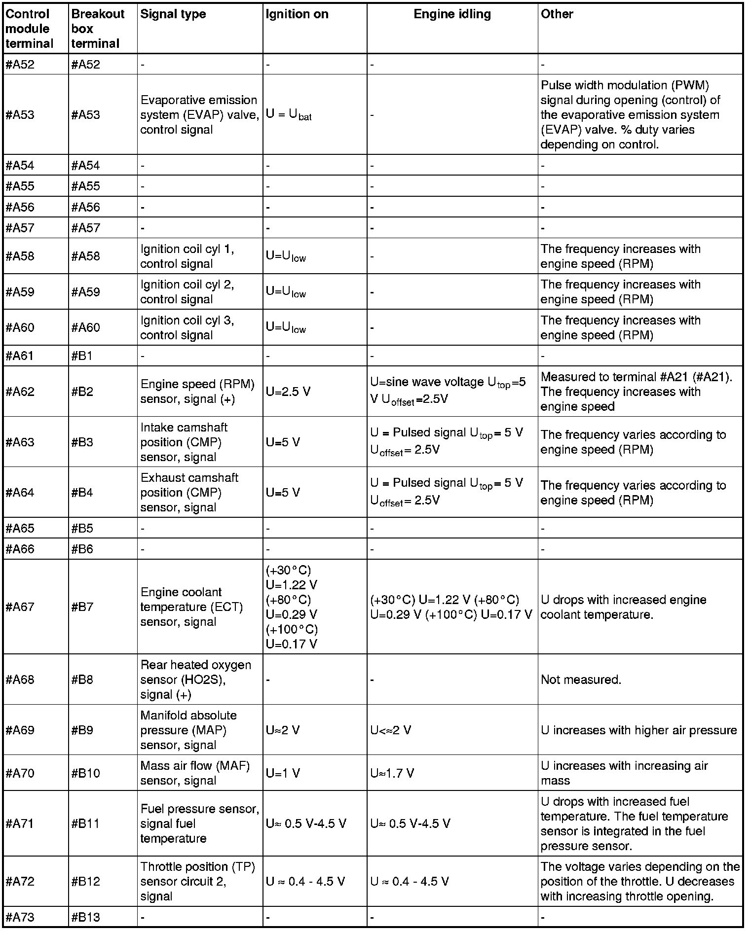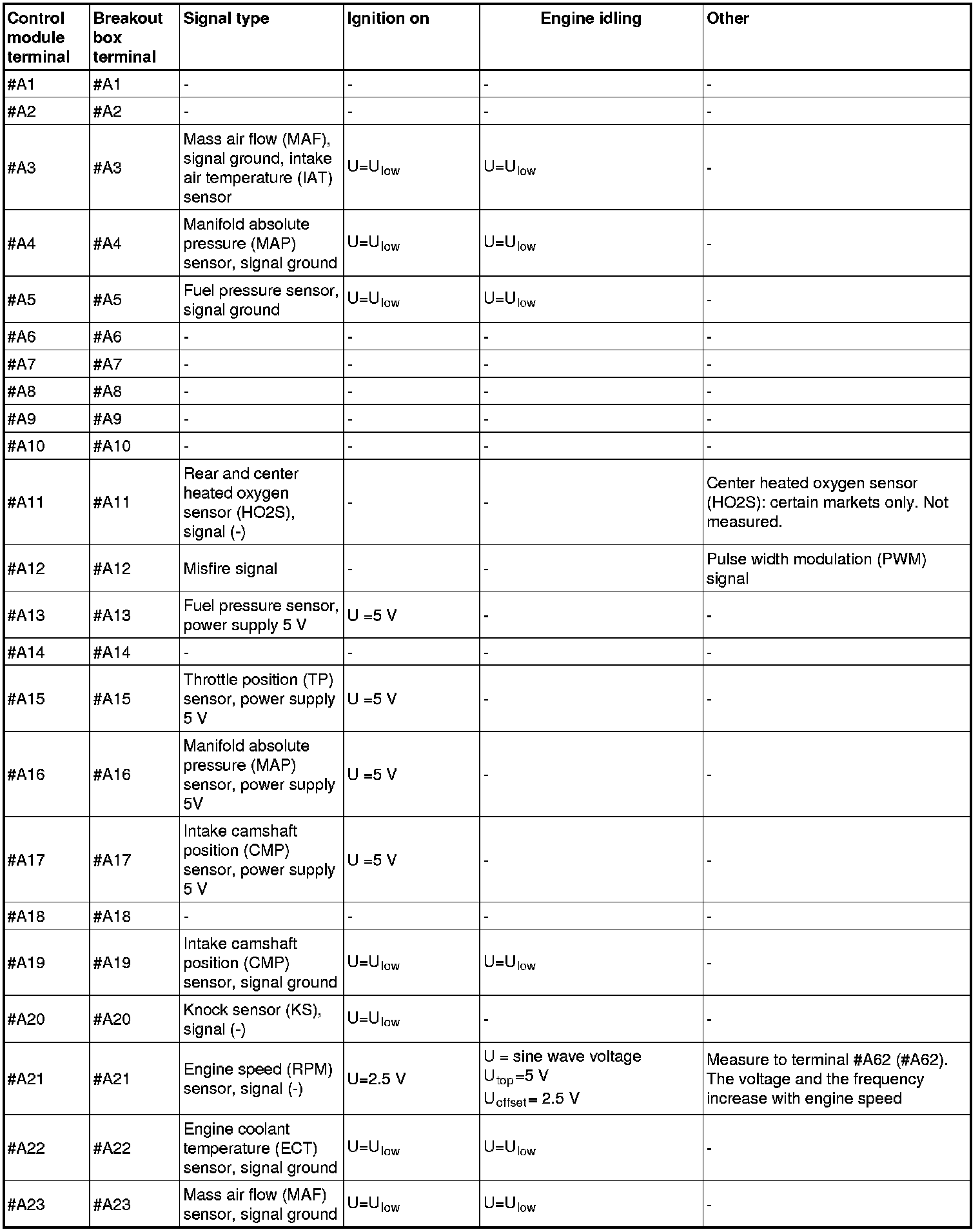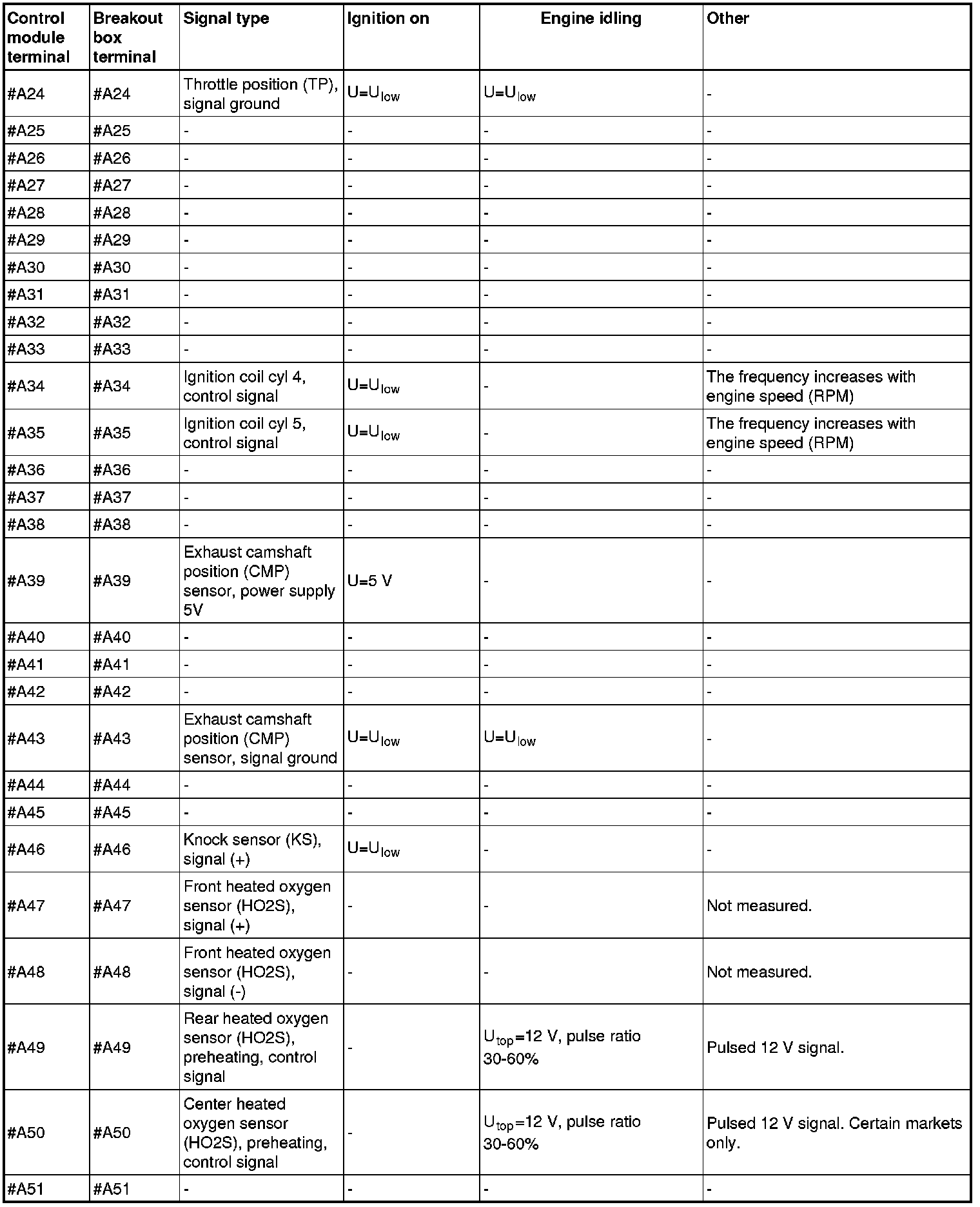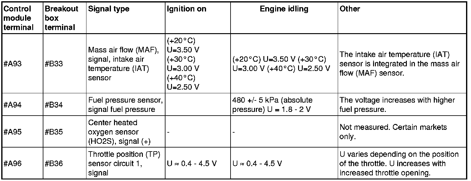 All values given below are between the terminals stated in column 1 (and breakout box terminal in the terminal) and terminal #B1 (#C1) unless otherwise indicated in column 6 (Miscellaneous).