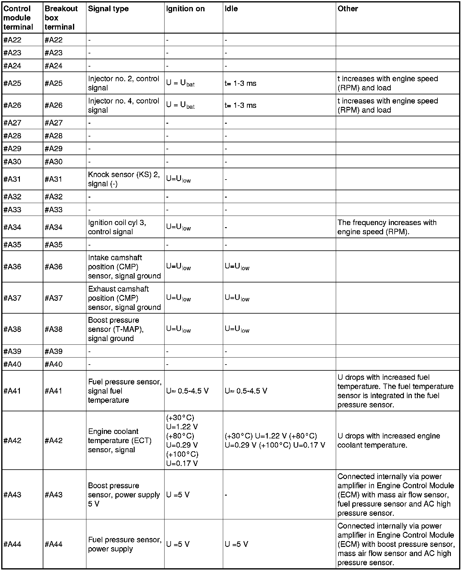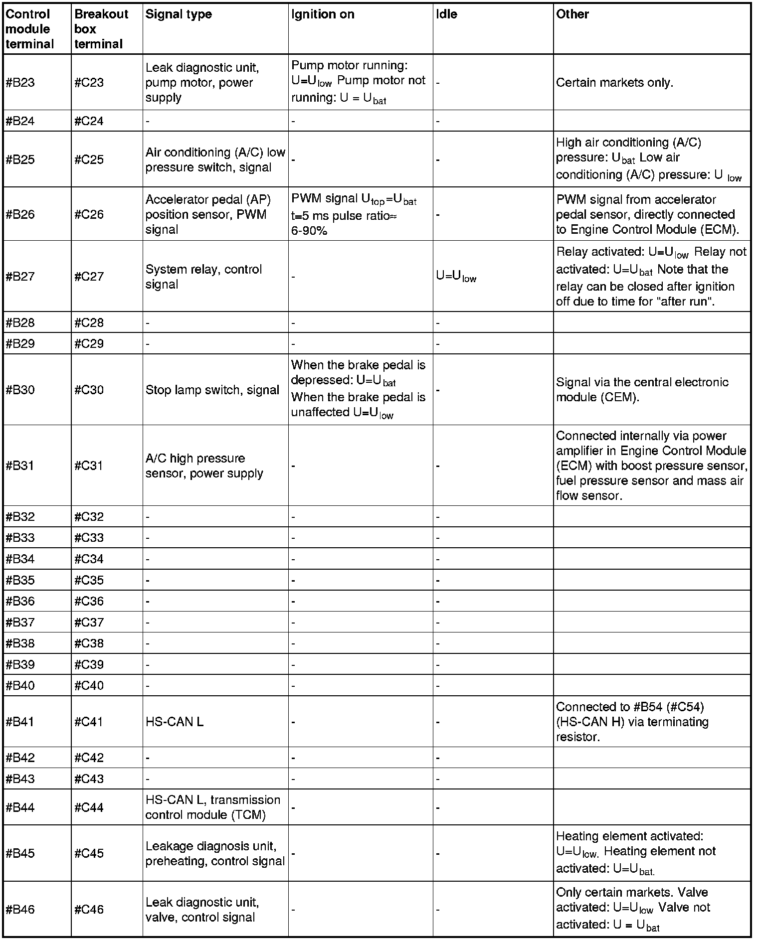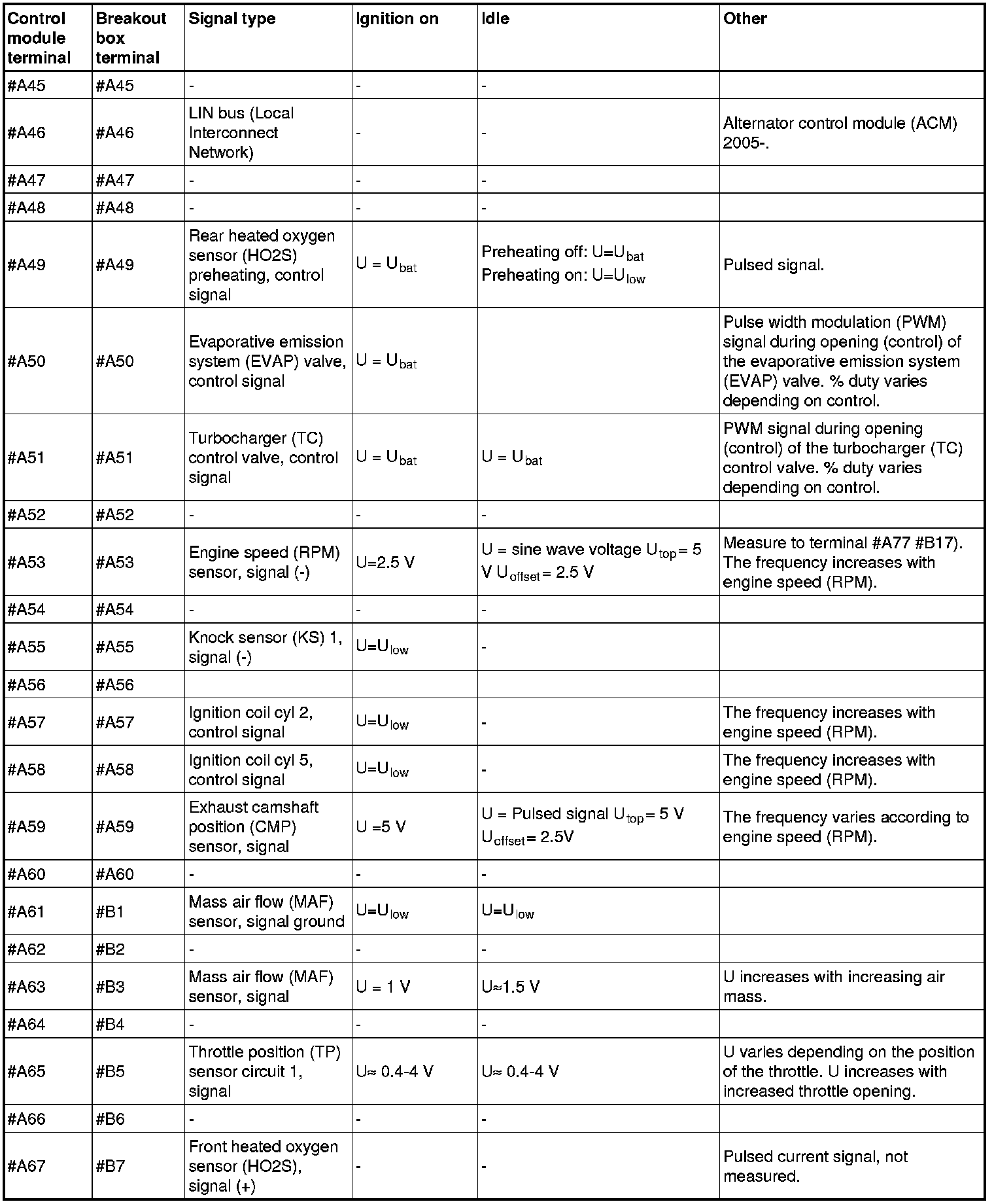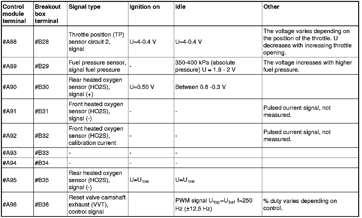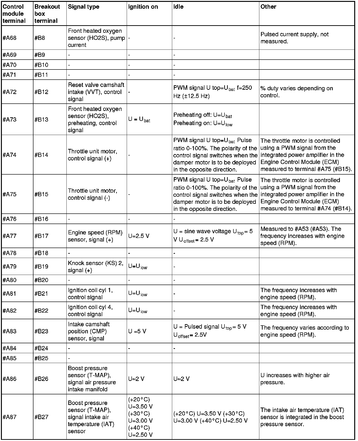 All values given below are between the terminals stated in column 1 and breakout box terminal in the terminal) and terminal #B1 (#C1) unless otherwise indicated in column 6 (Miscellaneous).