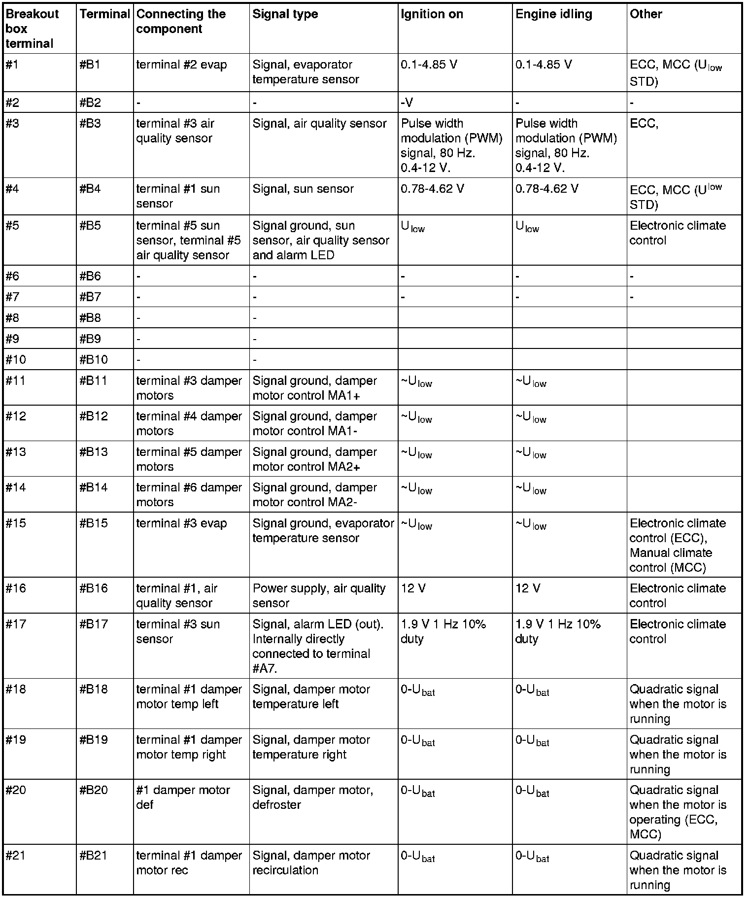 Signal description, climate control module (CCM), Connector B