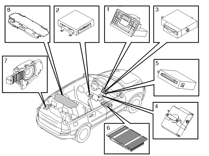 The infotainment control module (ICM) monitors the MOST network and manages communication. The infotainment control module (ICM) is monitored by the central electronic module (CEM) on the controller area network (CAN). In addition to the infotainment control module (ICM), there are two control modules which are standard on the MOST network. These are: