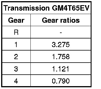 The value indicates the transmission gear ratio. The control module uses the input and output speeds to calculate the gear ratio. For the correct gear ratio see the table below