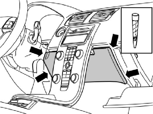 - Remove the panel in front of the centre console. It is secured by hidden clips, 4 pcs.