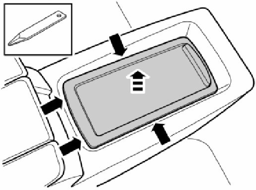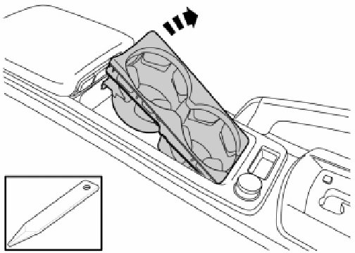 - Remove the cup holder from the rear tunnel compartment by prying at the leading edge and pressing in the catches, first at the leading edge and then on the sides.