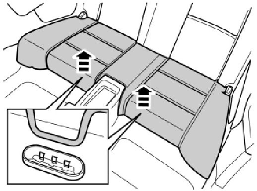 - Remove the rear seat cushion by first pressing the outer edges of the cushion backwards and then by pulling them upwards so that the outer hooks release.