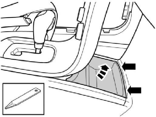 - Remove the front storage compartment by prying it off at the front edge using a weatherstrip tool and lifting it out.