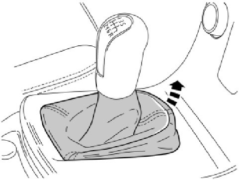 - Remove the gear selector lever boot from the center console. First pry it off at the front edge using a weatherstrip tool and then unhook it at the rear edge.
