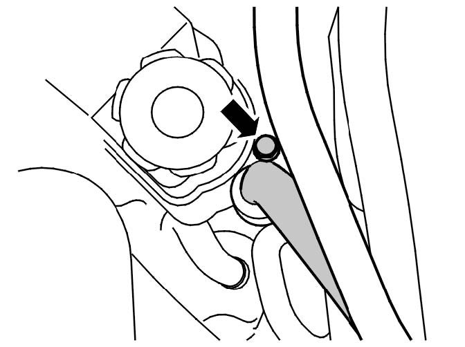 Remove the nut under the front fender liner on the righthand side. See the illustration.