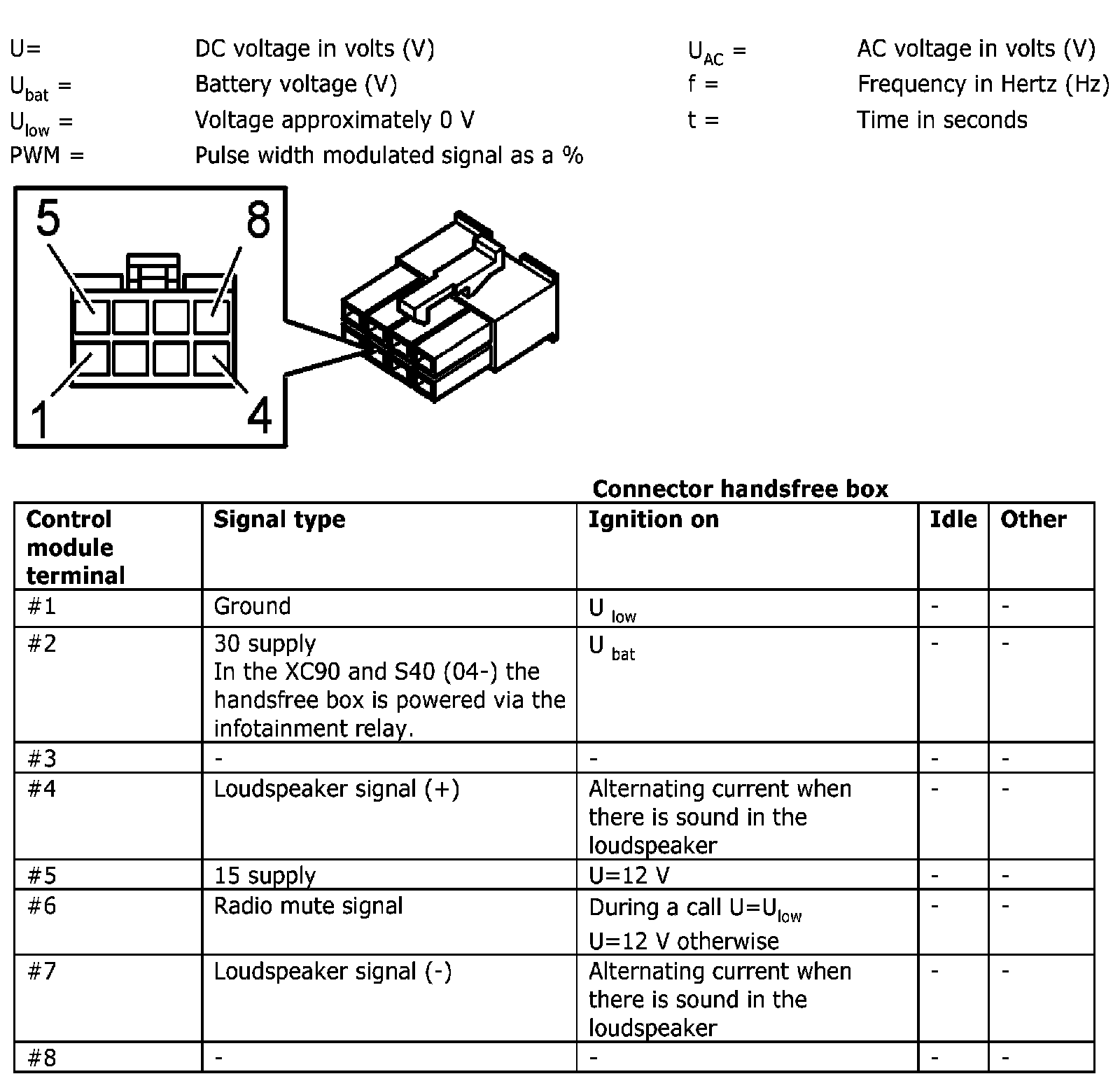 All the values given below are between the terminals stated in column 1 and terminal #1 in column 2 (signal ground). This applies unless otherwise indicated in brackets.