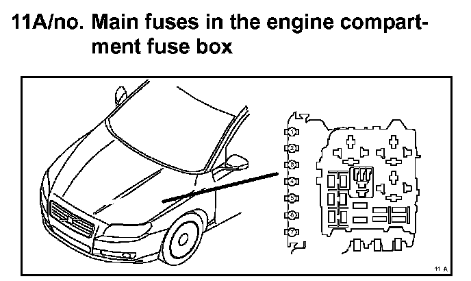 11A/No. Main Fuses In the Engine Compartment Fuse Box: